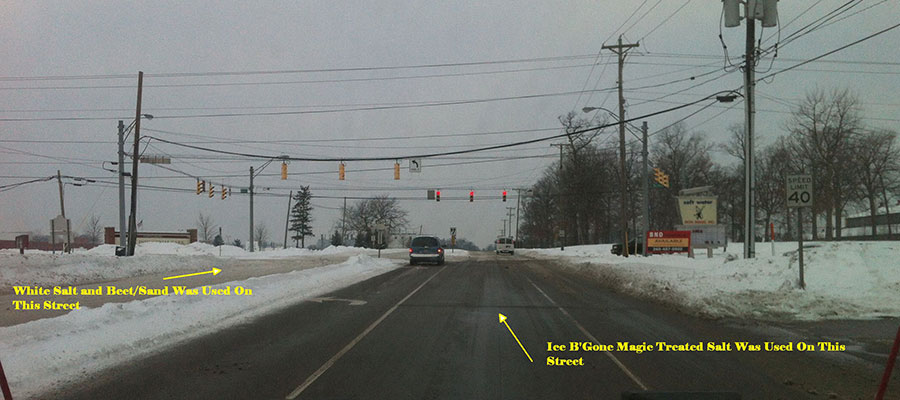 The following case studies illustrate the anti-icing and de-icing effects and differences between using our bulk Ice B’Gone our Ice B’Gone Magic Liquid and our SledgeHammer® Liquid products verses the use of regular rock salt. Each product saves you time, money and labor costs, see why Ice B’Gone/Ice B’Gone Magic Liquid and SledgeHammer® are the most efficient snow management products on the market.
